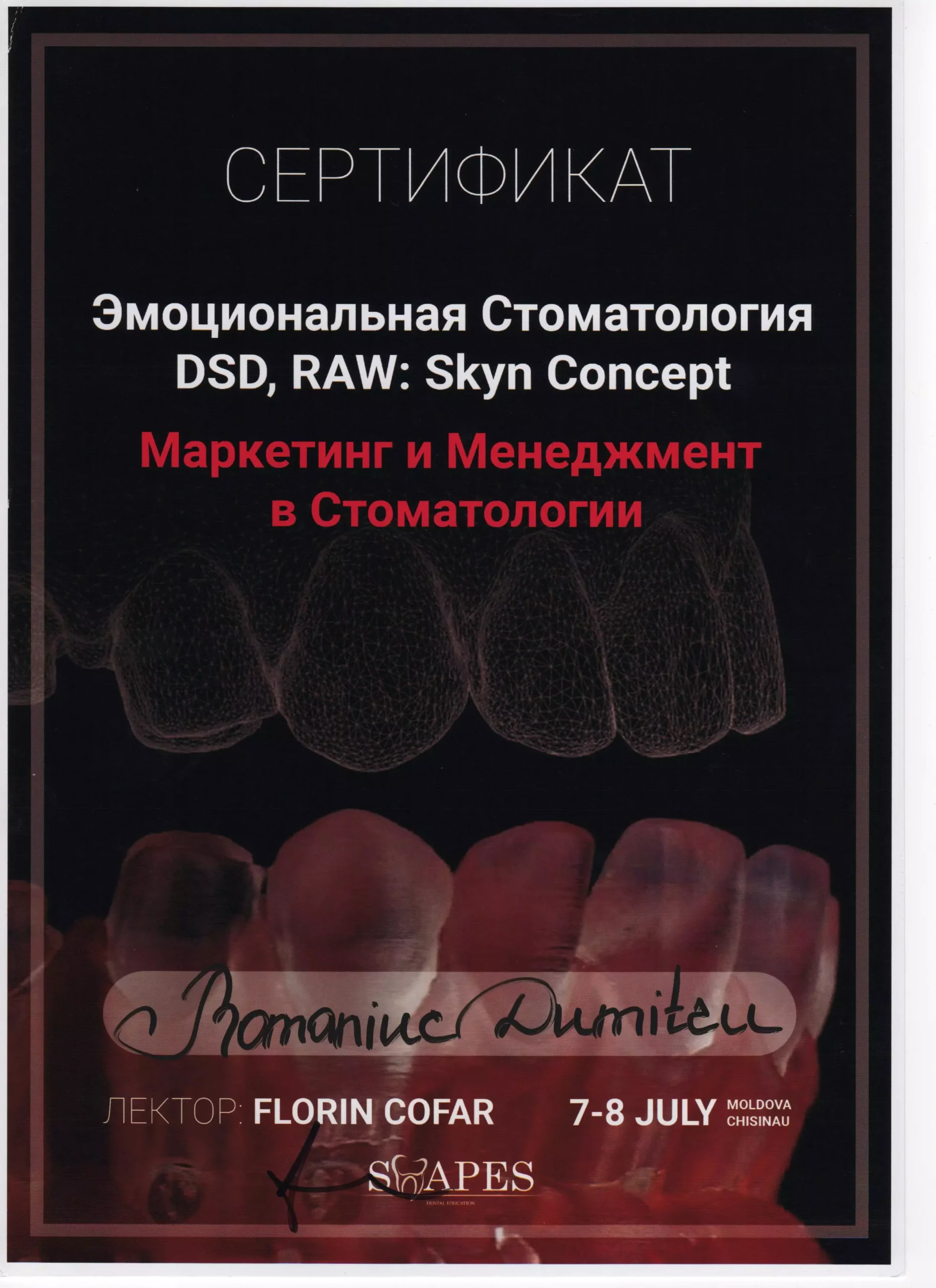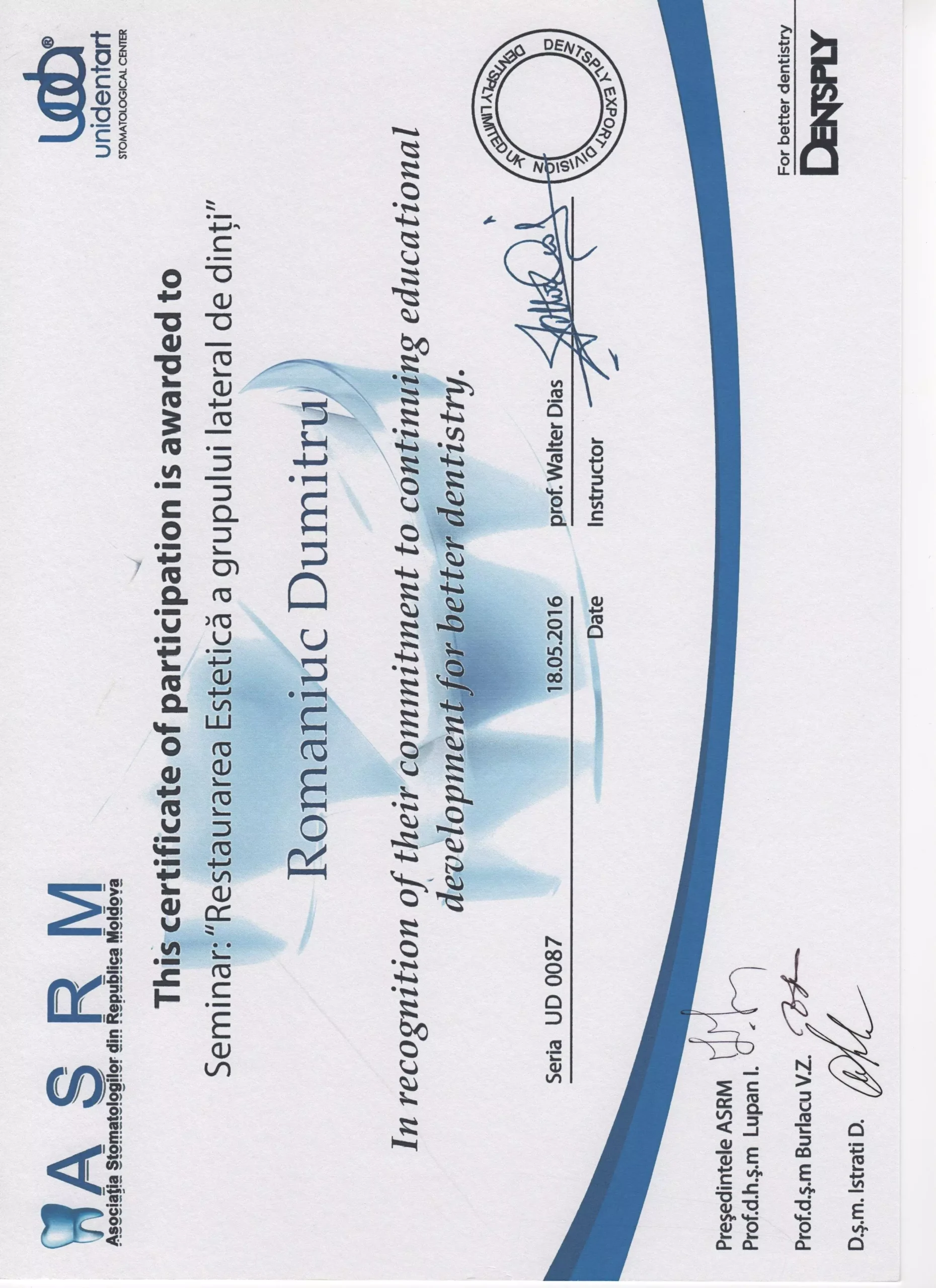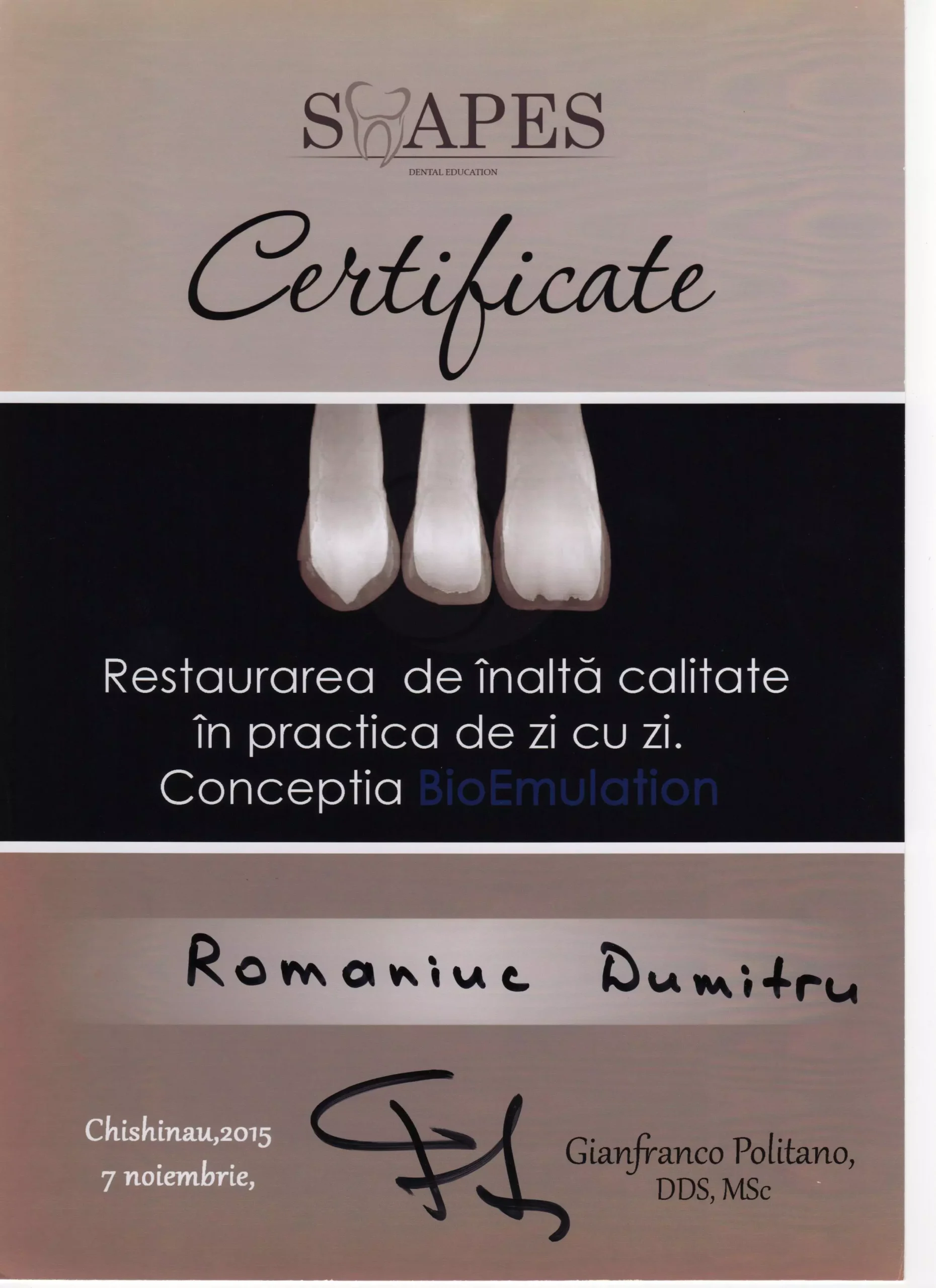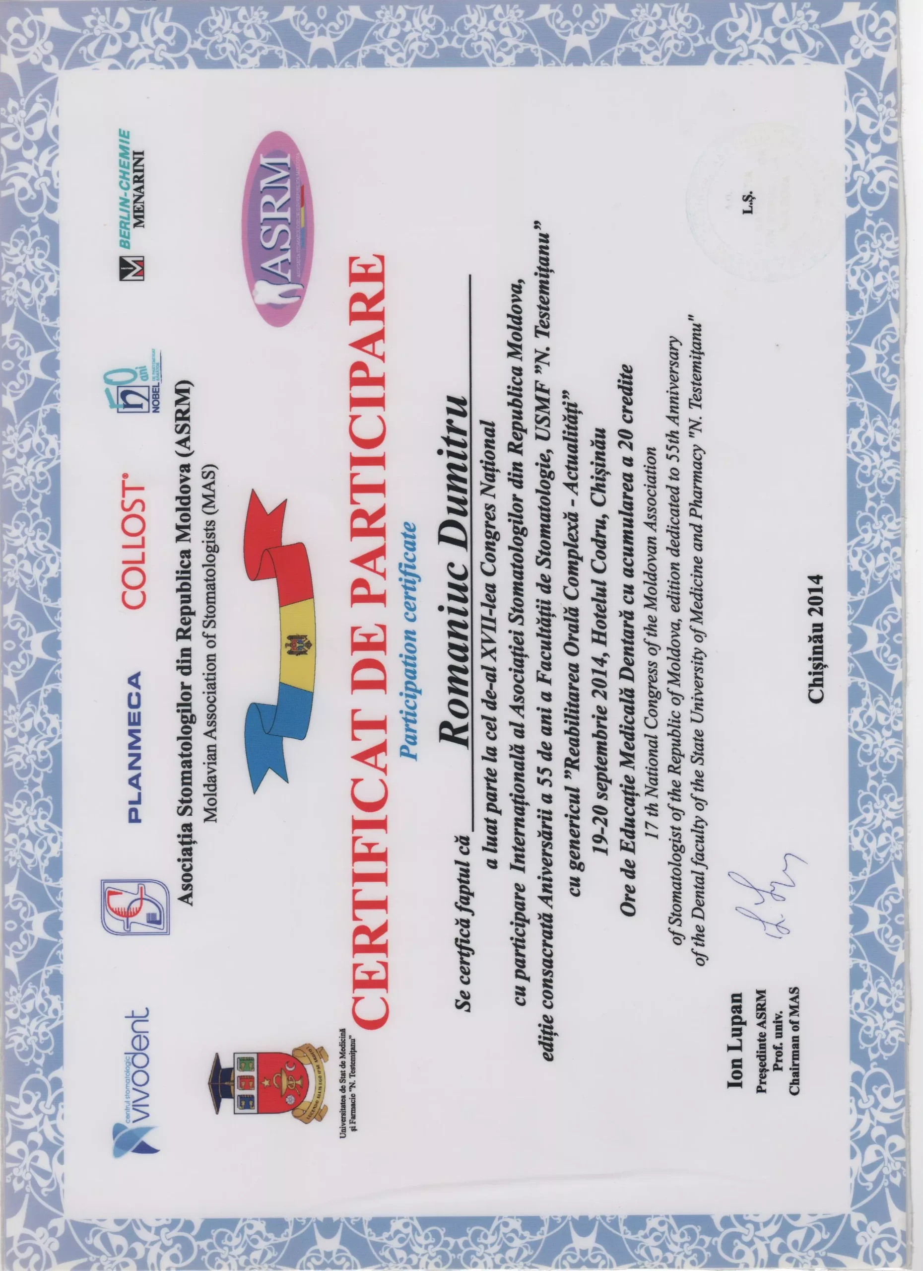 Mulțumiri speciale dr.Dumitru Romaniuc pentru săptămâni de tratamente de restaurare dentară extinse și provocatoare, de profesionalismul si răbdarea de care a dat dovada pe parcursul la o luna de eforturi, m-a ajutat sa vin cu drag la cabinet,mi-a explicat fiecare pas, fiecare proces, s-a asigurat ca sunt bine si mulțumită , punând accent pe calitate, nu doar pe eficientă. Un real succes prin tot ce a reușit sa realizeze, ajutându-ma pe viitor sa zimbesc mai des și sa ma mândresc cu dinții mei...sa depășesc fobia pe care o aveam fata de cabinetele stomatologice, deoarece am schimbat in jur la 4-5 Cabinete pina a ajunge la clinica Dr. Romaniuc , la sigur ma opresc aici și cu siguranța voi reveni periodic și nu doar eu dar toată familia și mulți alți pentru ca voi recomanda cu încredere și multă caldura clinica data 🙏 sunteți super-mega tari 💪 succese pe viitor și cîți mai mulți clienți multumiți, Fericiți , imipliniti ca mine 😅
