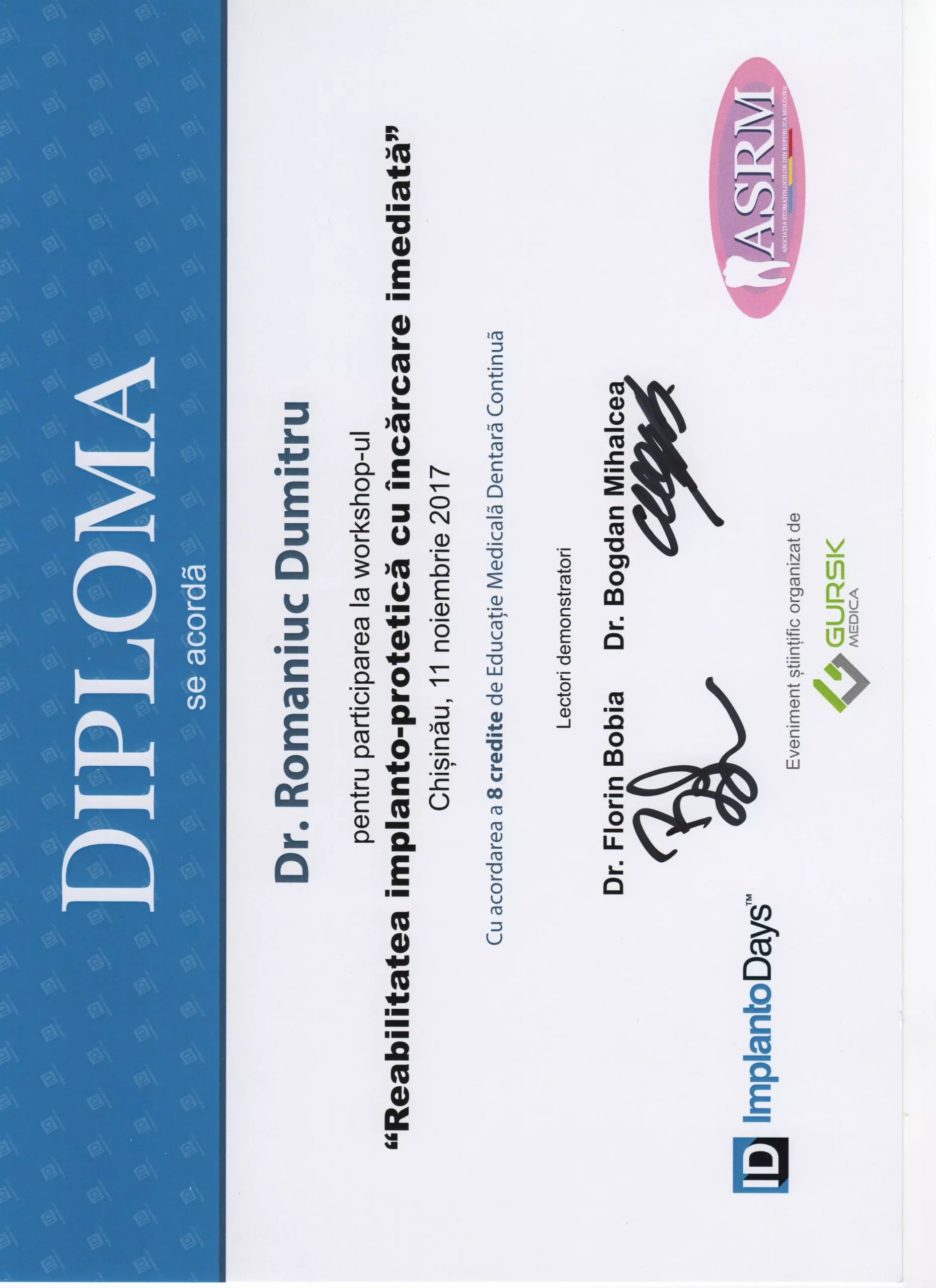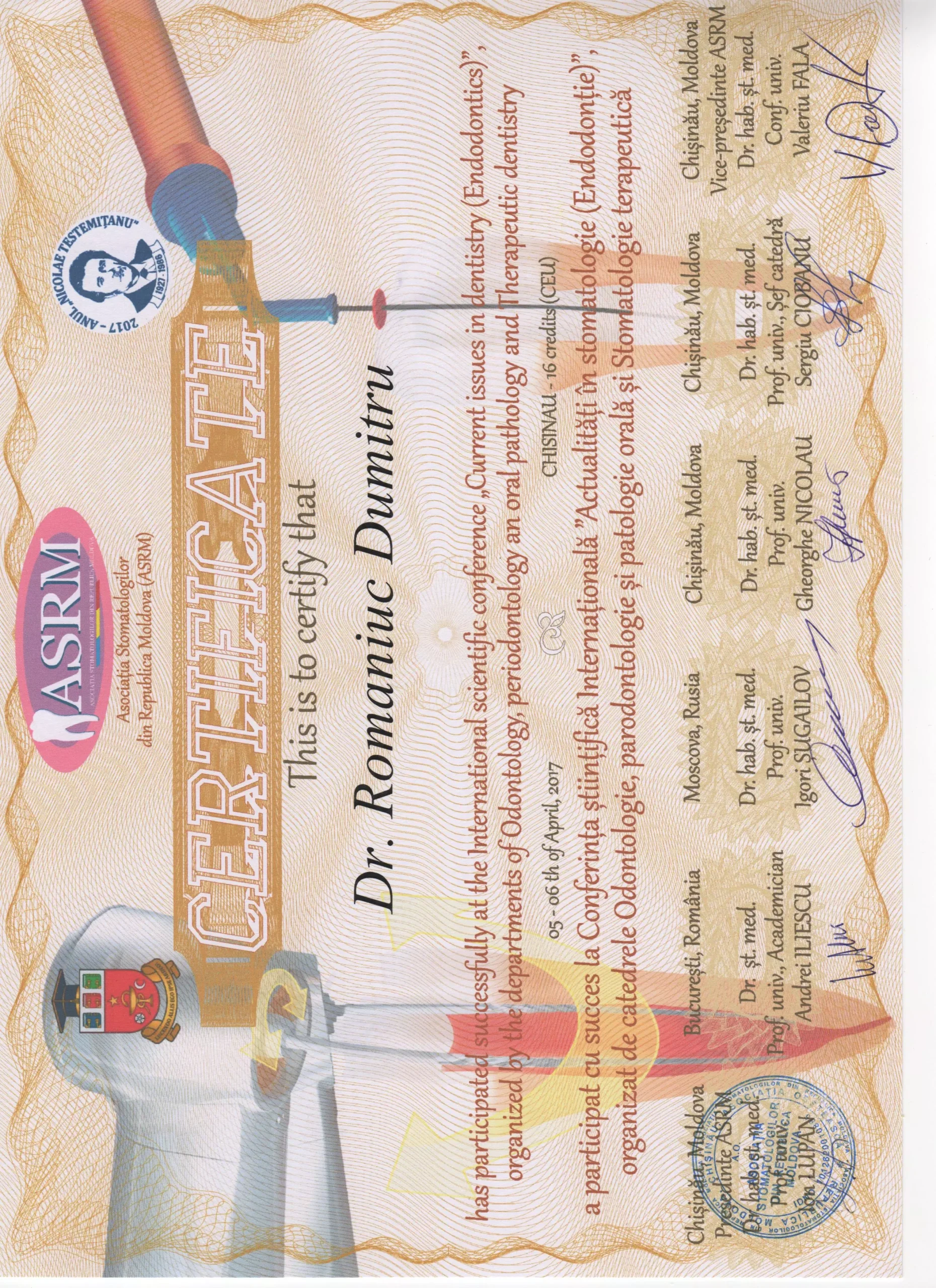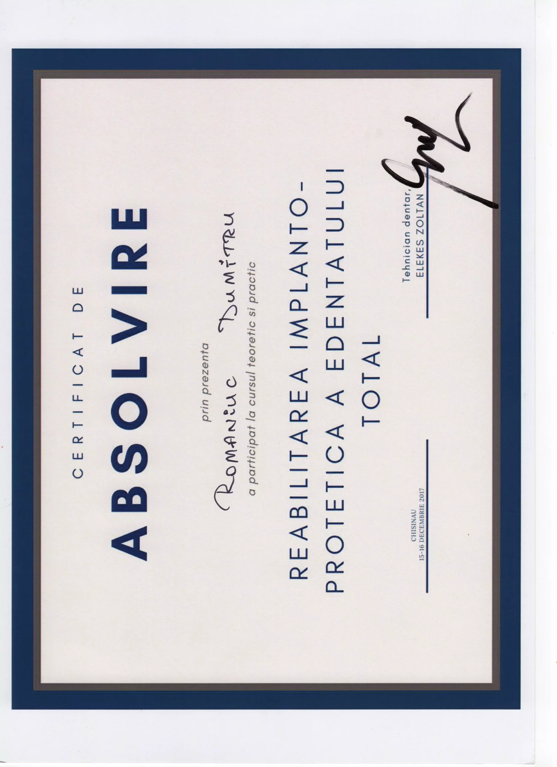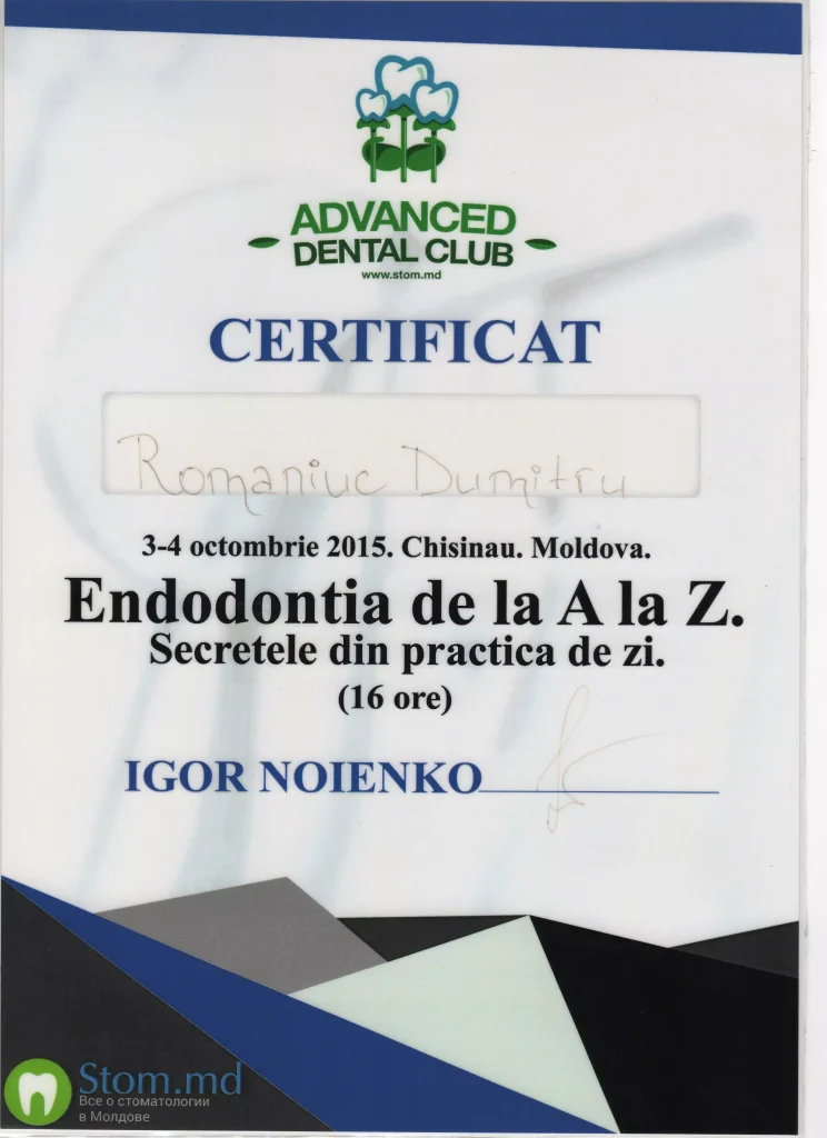 Am întâlnit o echipă profesionistă, în frunte cu Doctor-ul Dumitru Romaniuc! Foarte mulțumit de rezultat și serviciile acordate!!! Multumim Dumitru Romaniuc!