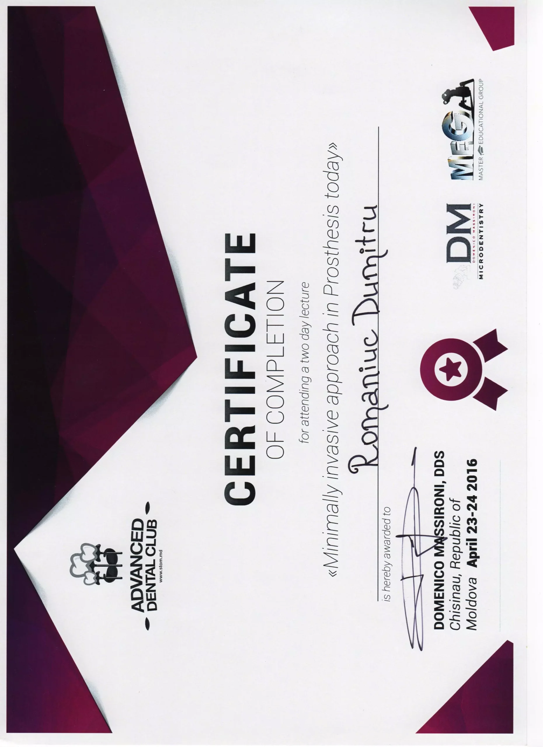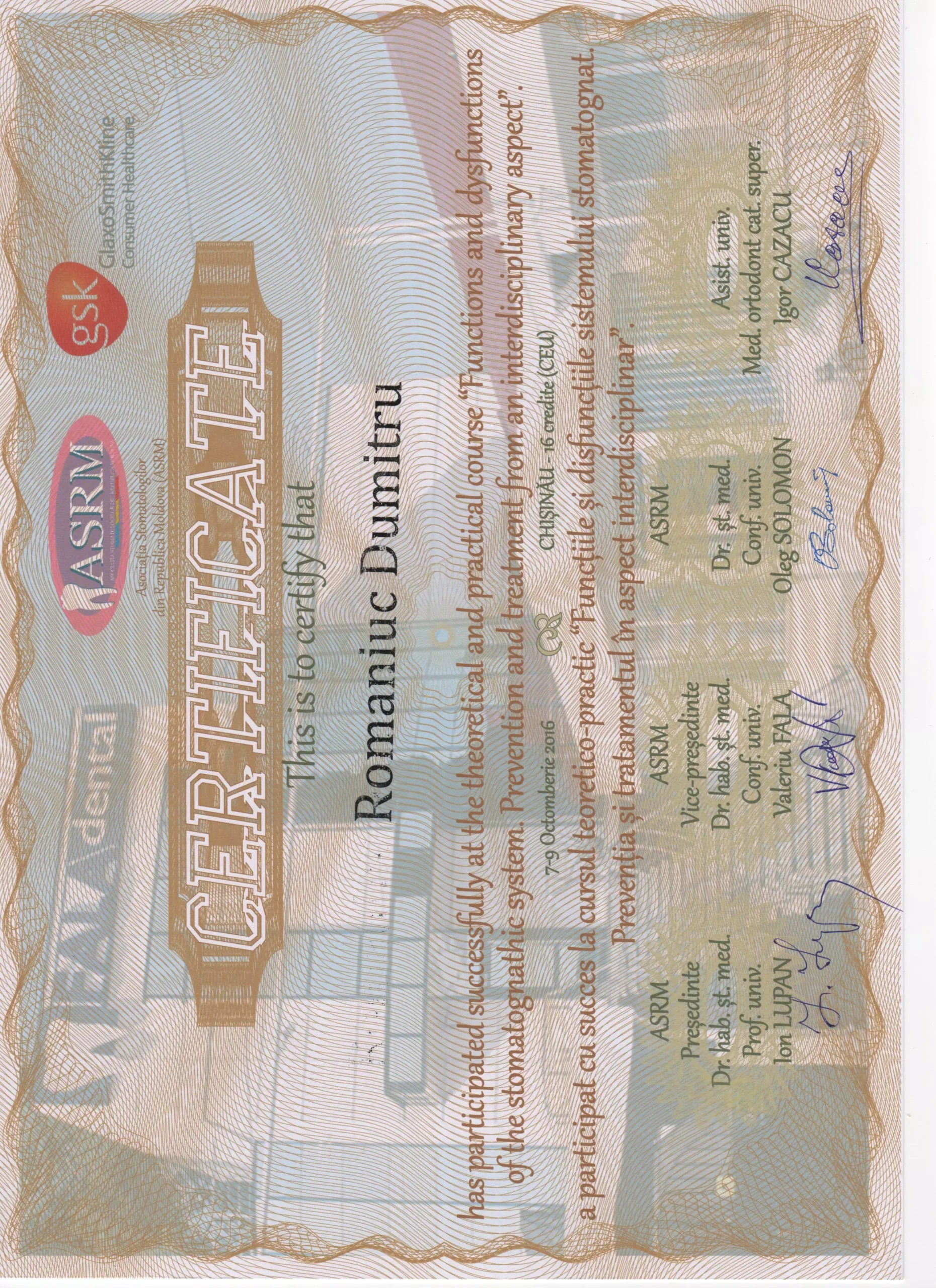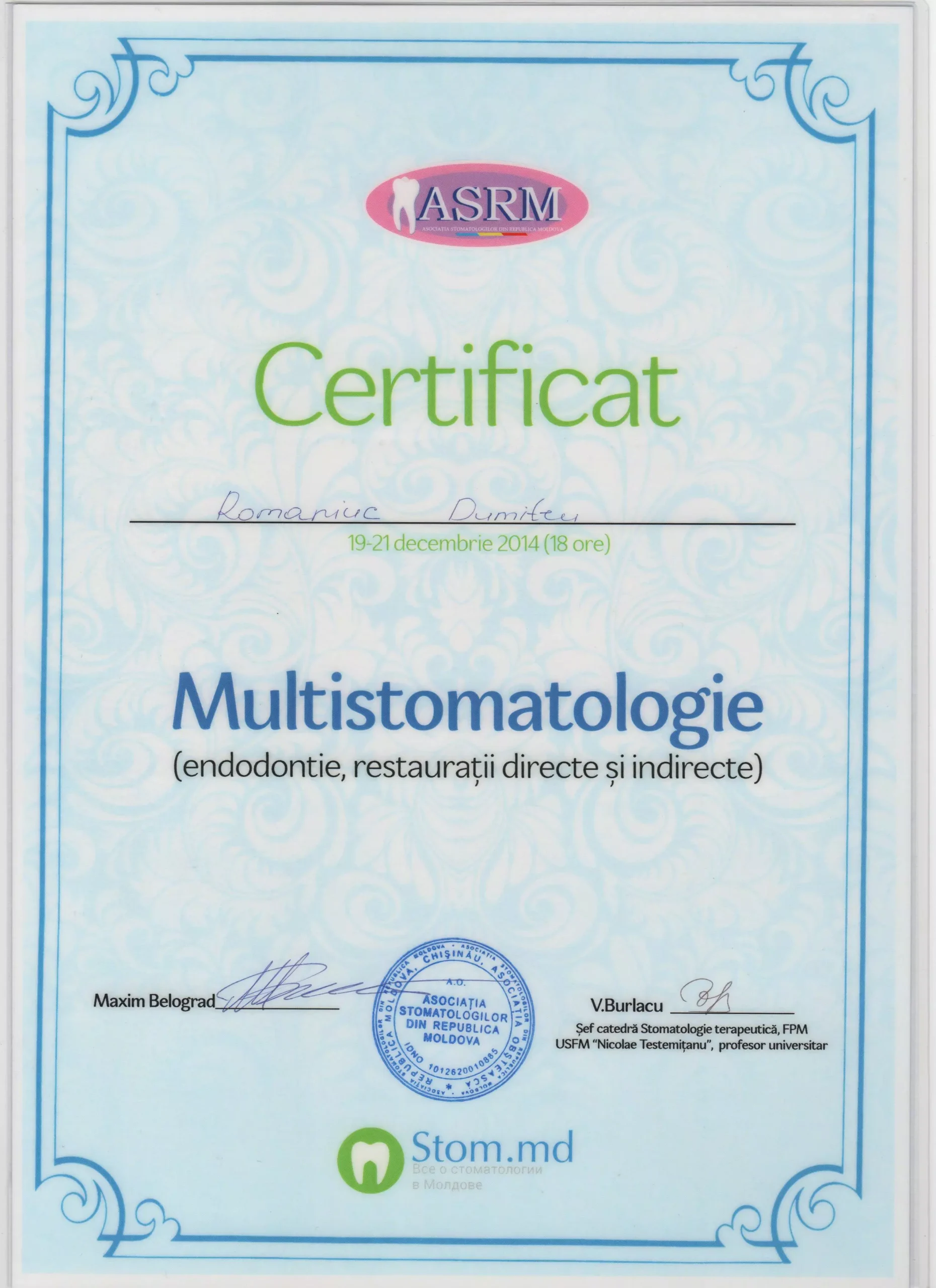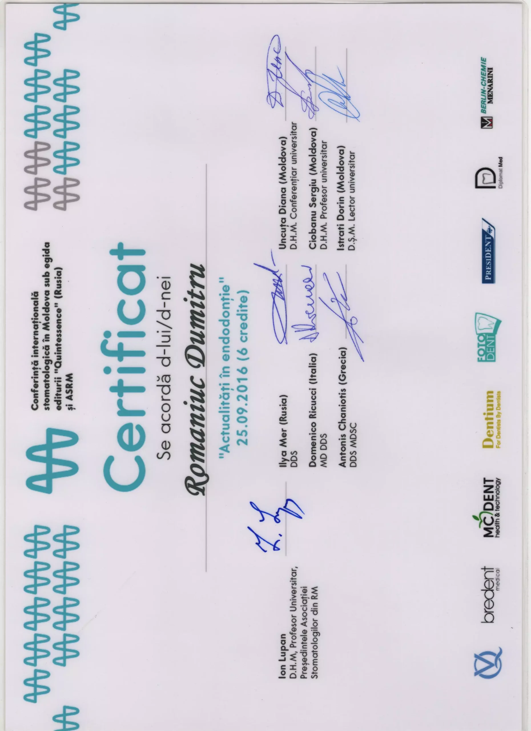 Am întâlnit o echipă profesionistă, în frunte cu Doctor-ul Dumitru Romaniuc! Foarte mulțumit de rezultat și serviciile acordate!!! Multumim Dumitru Romaniuc!